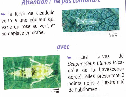 Elle fait l’objet d’une lutte obligatoire et elle est inscrite sur la liste des organismes nuisibles de quarantaine pour la CEE. Elle est très épidémique et contraint à l’arrachage des ceps ou des parcelles contaminées. Elle affecte la quantité et la qualité de la vendange Elle est provoquée par un phytoplasme dans les vaisseaux conducteurs du cep. Ils doivent se multiplier alternativement dans une plante puis dans un insecte pour se maintenir dans la nature. Le vecteur est la cicadelle originaire de l’Amérique du Nord et inféodée à la vigne où elle effectue la totalité de son cycle (5 stades larvaires ), l’insecte adulte apparaît en Juillet il s’accouple et pond des œufs jusqu’en octobre puis hiverne sous forme d’œuf. Le matériel de multiplication peut être contaminé il est alors responsable de la propagation. Diagnostic sérologique (test ELISA) ou génomique PCR Stratégie de lutte : · Production de bois et plants sains. · Lutte contre la cicadelle traitement d’hiver, larvicide un mois après les premières éclosions deuxième traitement en fin de rémanence du premier et un traitement d’assurance(nombreuses M.A Alphamétrine,Cyperméthrine, Méthomyl etc.) · Lutte biologique contre la cicadelle : parasitoïdes : hyménoptères et diptères ainsi que des parasitoïdes oophages (MALAUSA INRA Antibes). Bibliographie : ENTAV 1999, PHYTOMA N° 565, Guide de la protection du vignoble
